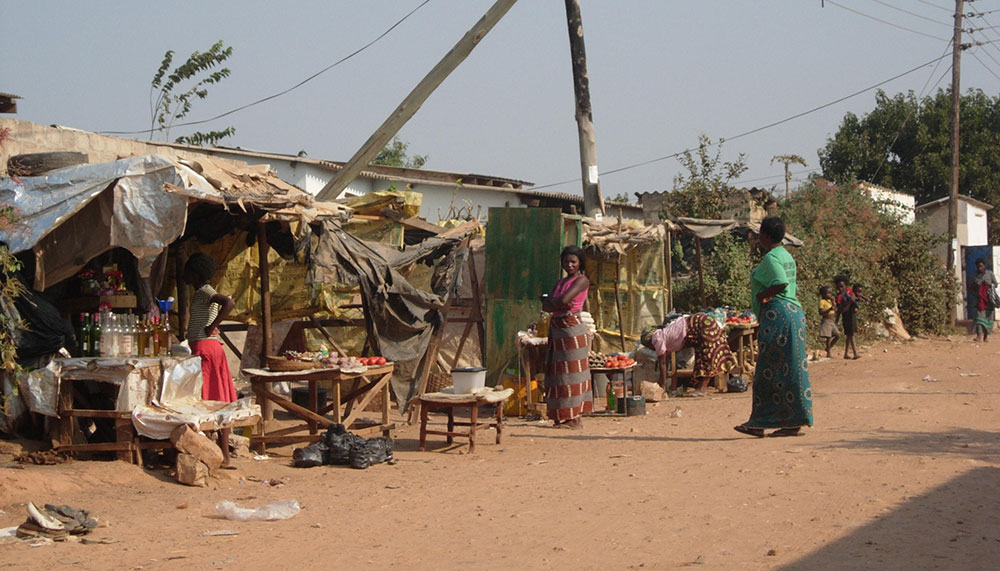 Ng'ombe is a very large and impoverished township just outside Lusaka. There are no made-up roads, no piped water, no mains drainage. Houses are often dark, ill-furnished and cramped. Employment is scarce and childhood is harsh. There are many orphans, largely as a result of AIDS, and some 'street children'. Educational provision is woefully inadequate.